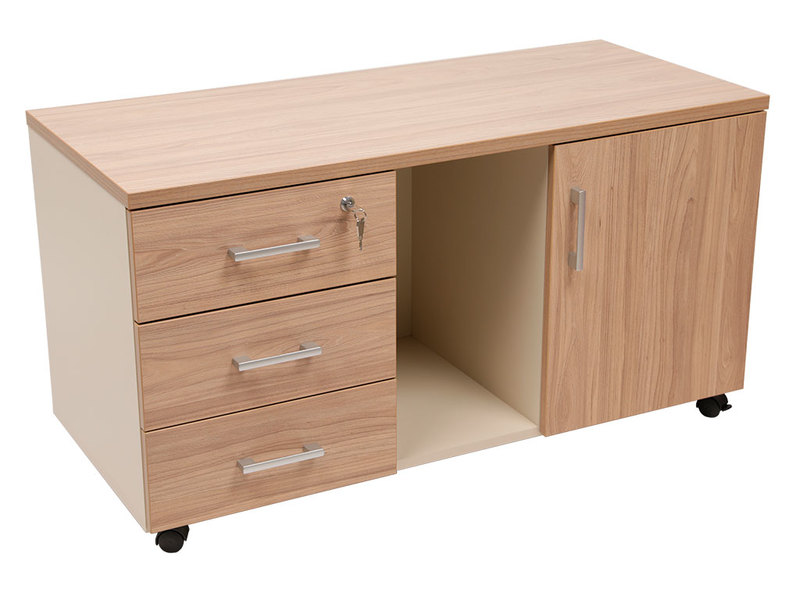 - верхний ящик тумбы снабжен замком и оснащен пластмассовым лотком для канцелярских принадлежностей